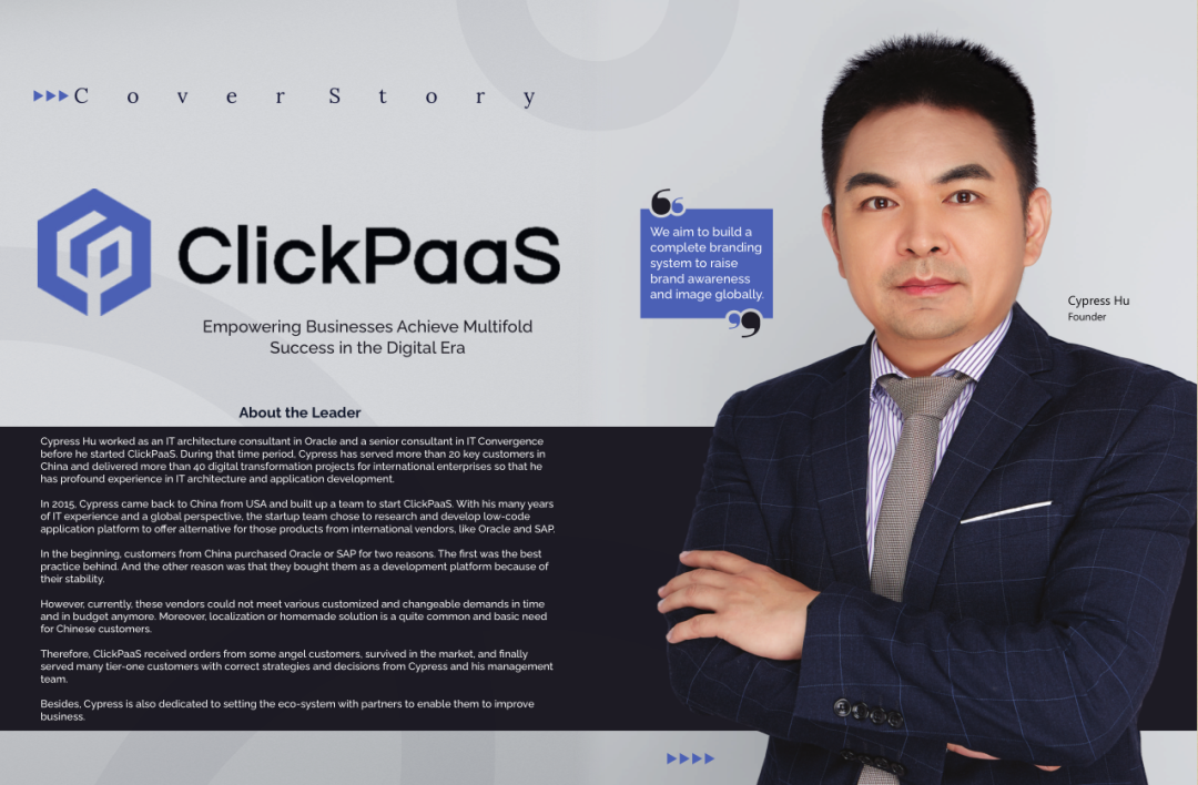 2022年年初,pg电游站入选外媒Insights Success低代码/无代码开发平台 Top10,创始人、CEO胡柏受邀接受专访并荣登封面人物,他与Insights Success的读者分享了pg电游站成立的初心、发展历程、当前的行业发展趋势以及他对公司未来的展望。